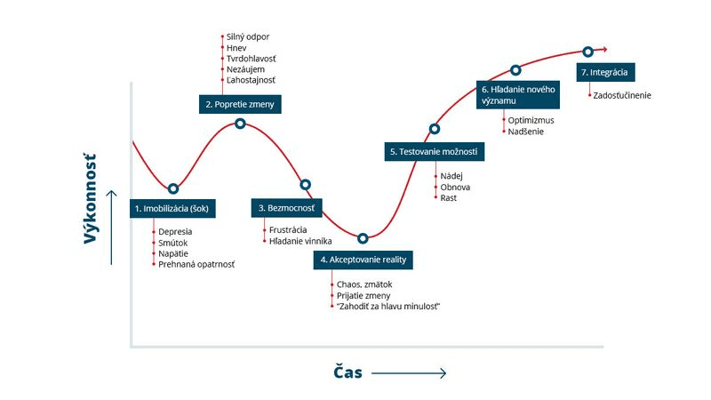 Častá chyba podnikov je, že berú zmenu len ako proces a neberú do úvahy jej emočný rozmer. Vaši ľudia môžu na zmenu reagovať veľmi odlišne na základe svojich pocitov a správny líder vie, ako emócie svojich kolegov zvládnuť.Na jednej strane budú odmietači. Venujte sa im, pomôžte im prejsť zmenou bez ujmy na pracovnom či osobnom živote. Možno to chvíľu potrvá, ale nakoniec sa vždy vyrovnajú s novou situáciou. Mali by ste sa však pripraviť na tieto emočné fázy: